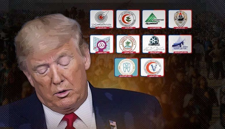10 نقابات مهنية ترفض مقترح ترامب: لا للتهجير لا لتصفية القضية الفلسطينية