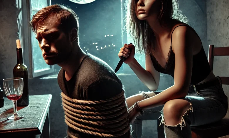 استيقظ بعد ساعات ليجد نفسه مقيدًا بحبل متين، فمه مغلق بشريط لاصق، وأمامه رنا تنظر إليه بعينين مشتعلة بالغضب والانتقام!